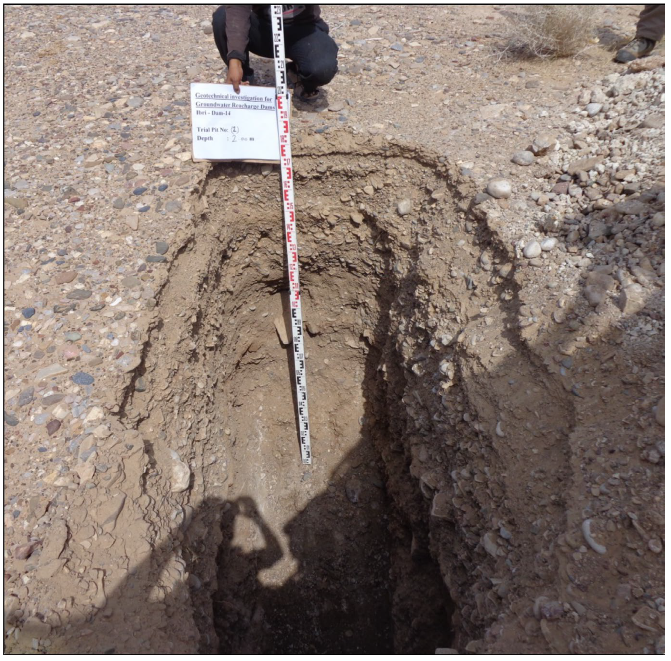 - Twelve trial pits within the reservoir area of the proposed dam, with depths ranging from 0.60 m to 2.50 m b.g.l. (location in Figure 4);