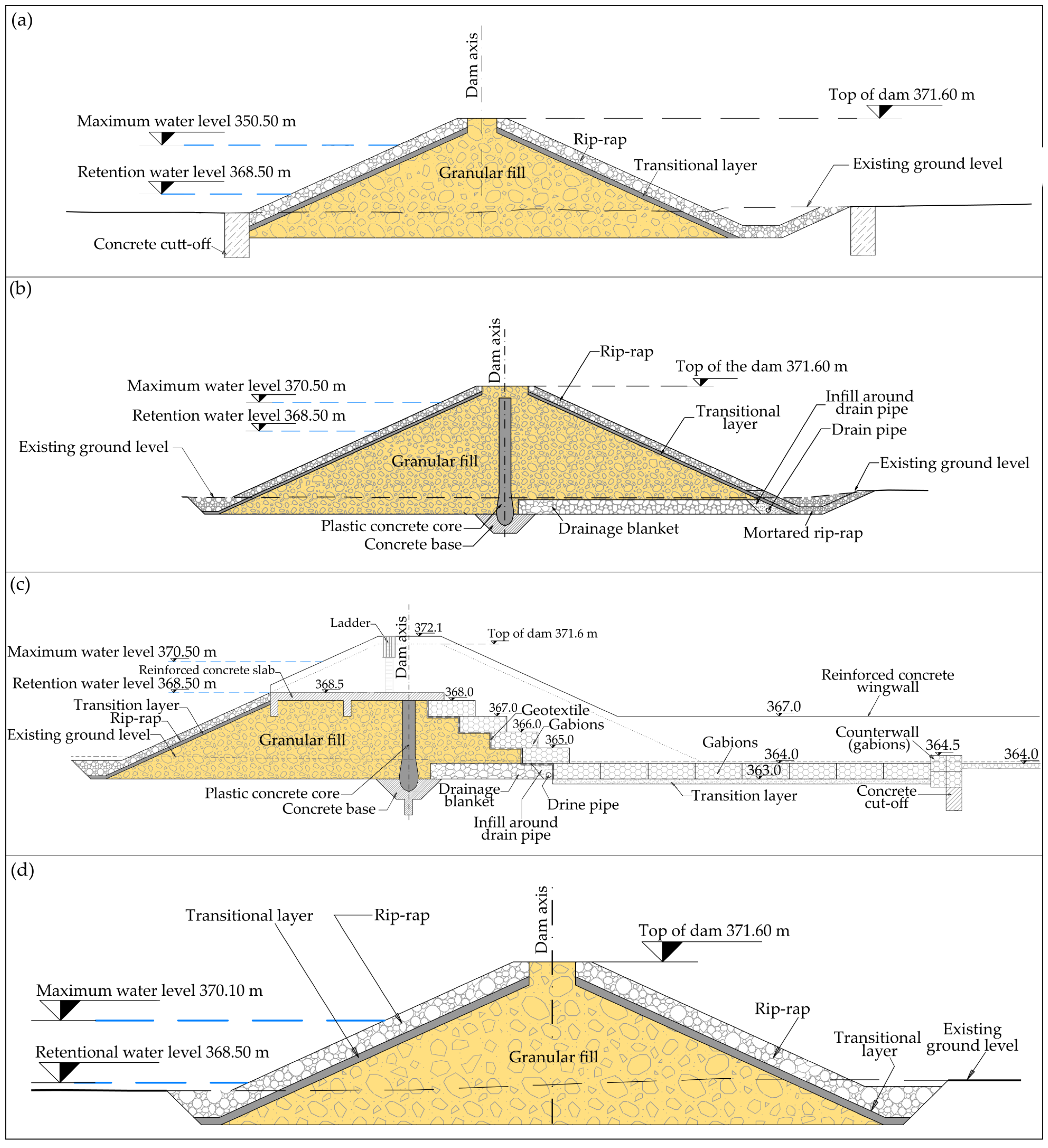 - U.S. Army Corps of Engineers. Earth and Rock-Fill Dams. General Design and Construction Considerations; Engineer Manual EM 1110-2-2300; U.S. Army Corps of Engineers: Washington, DC, USA, 1994. [Google Scholar]