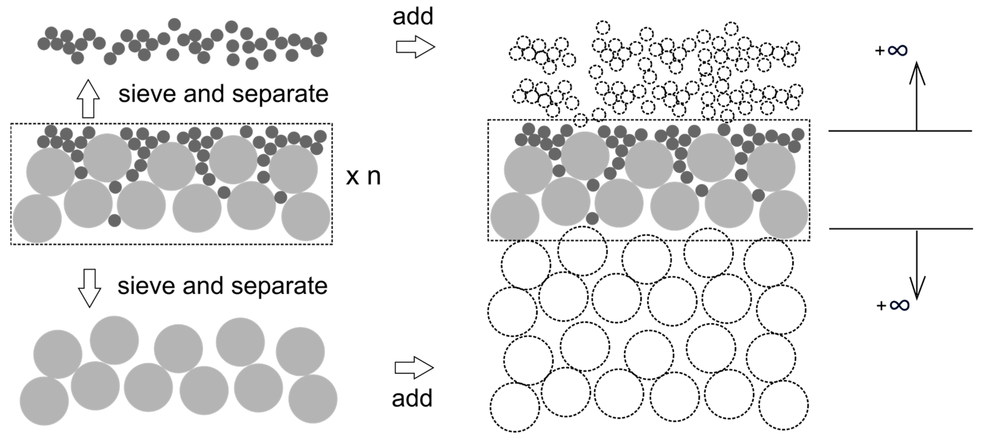 This model provides a valuable framework for understanding and predicting packing behavior in granular mixtures, especially in systems with wide particle size distributions. A more comprehensive description of the model is available in [].