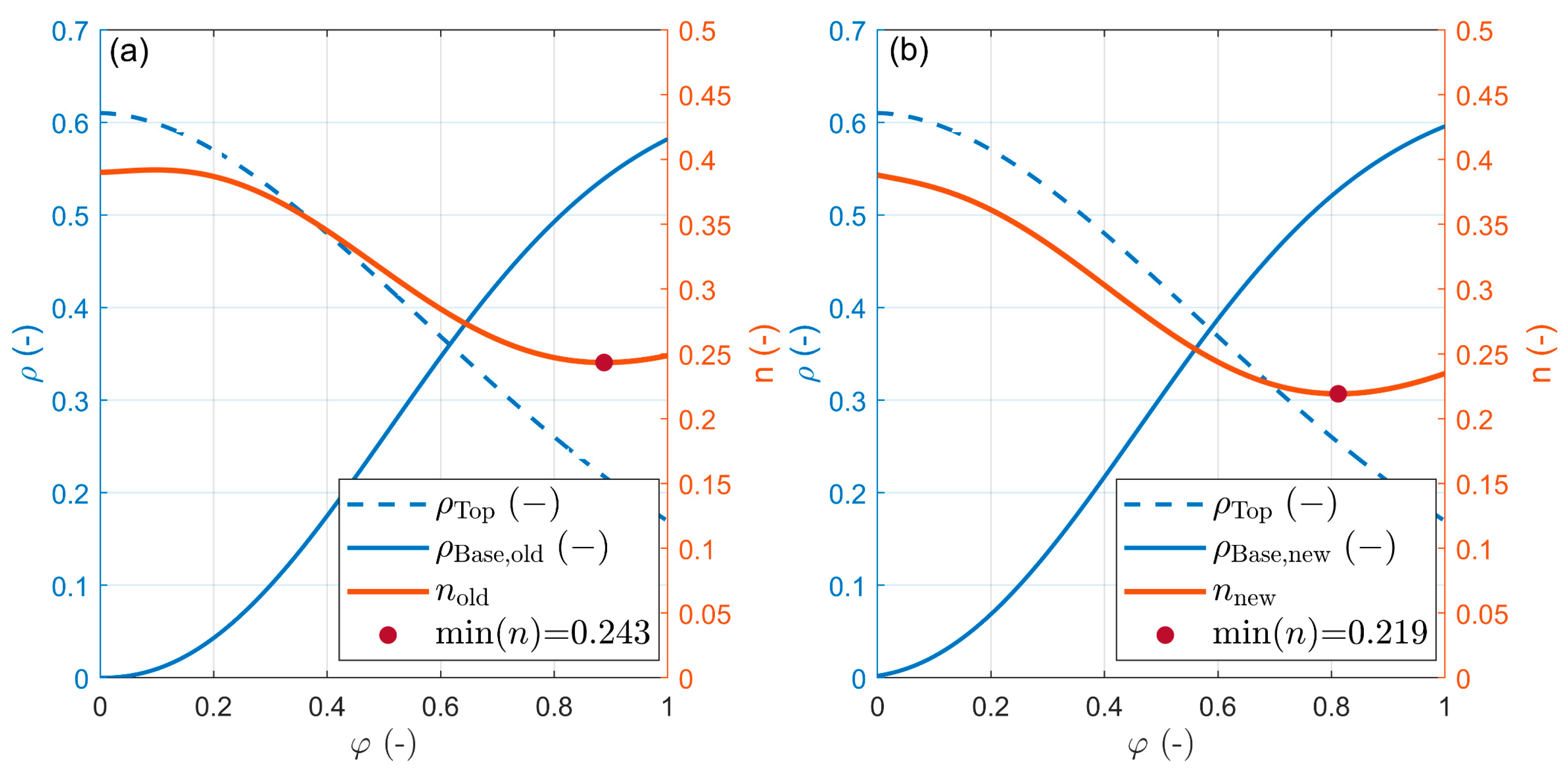 Based on this, within a transition layer of length φT, the average porosity nm, the minimum porosity nmin, and the volume fraction ratio of top-layer to base-layer particles XTop/XBase can be calculated using the following formulas: