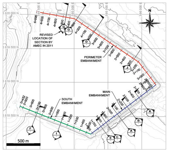 - The Mining Association of Canada. A Guide to the Management of Tailings Facilities. Version 3.1; The Mining Association of Canada: Ottawa, ON, Canada, 2019; p. 96. [Google Scholar]