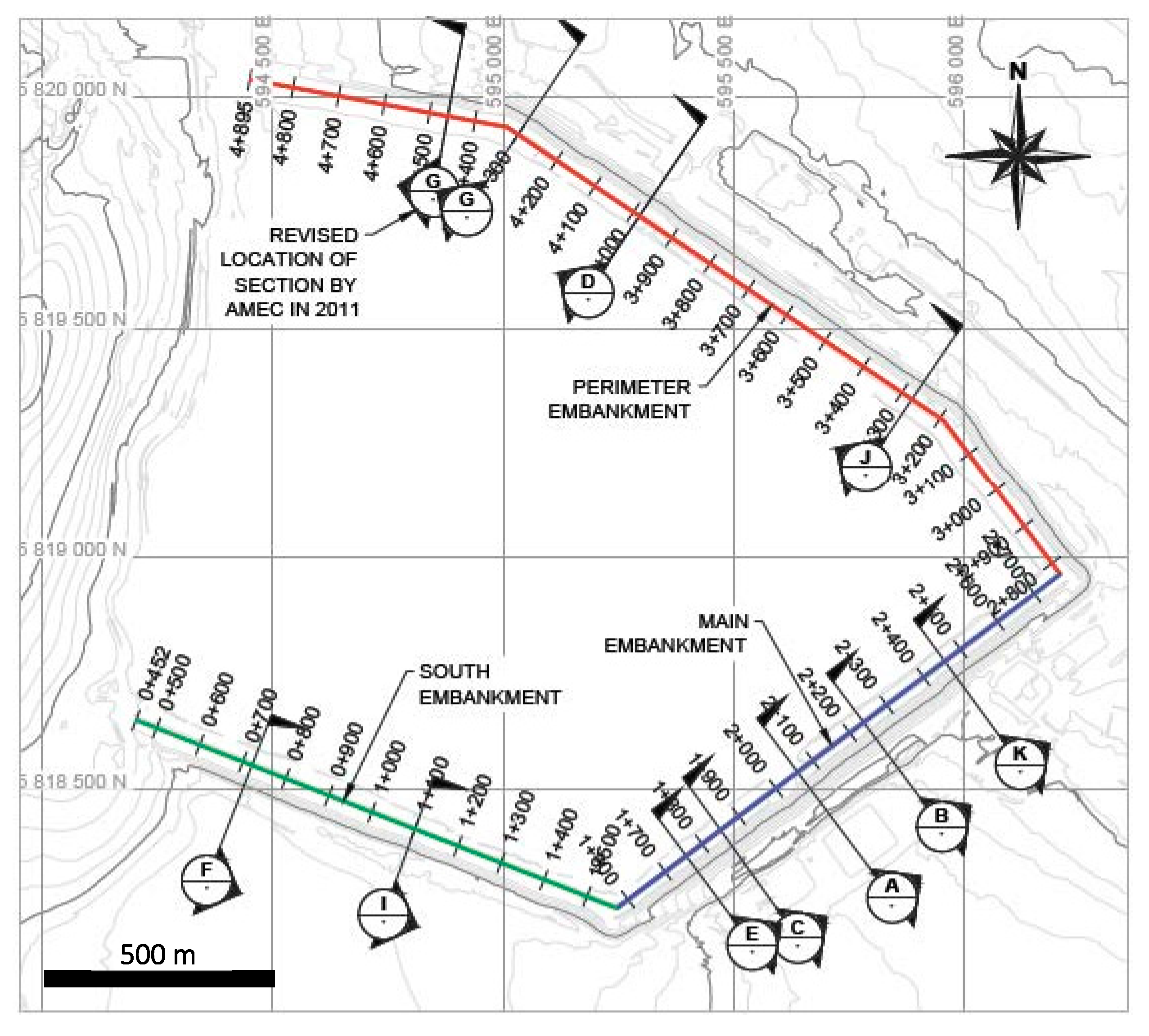 Tailings dams undergo phases of design, construction (often performed in stages), operation, decommission, closure, and post-closure in perpetuity. Such unique characteristics of tailings dams are shown in