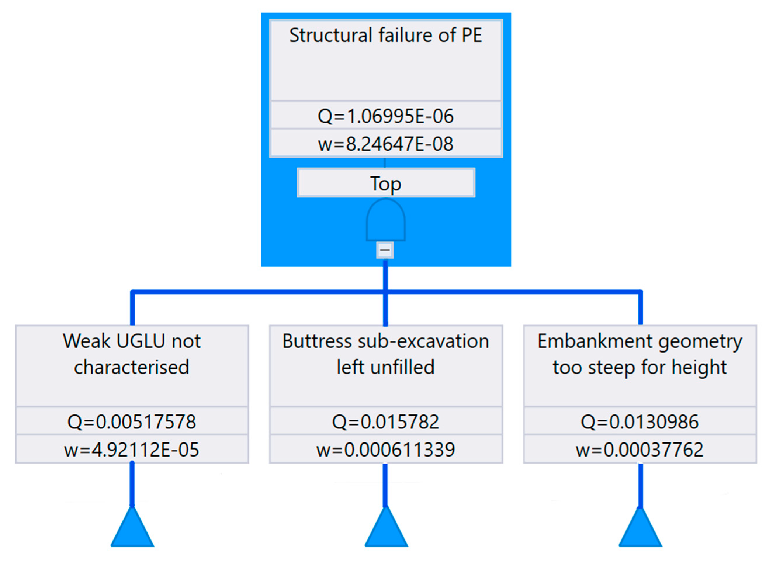 | E16 | Basic | TSF site investigation inadequate for PE foundation | TSF investigation inadequate for PE foundation | Constant (q = 0.001, w = 0) |