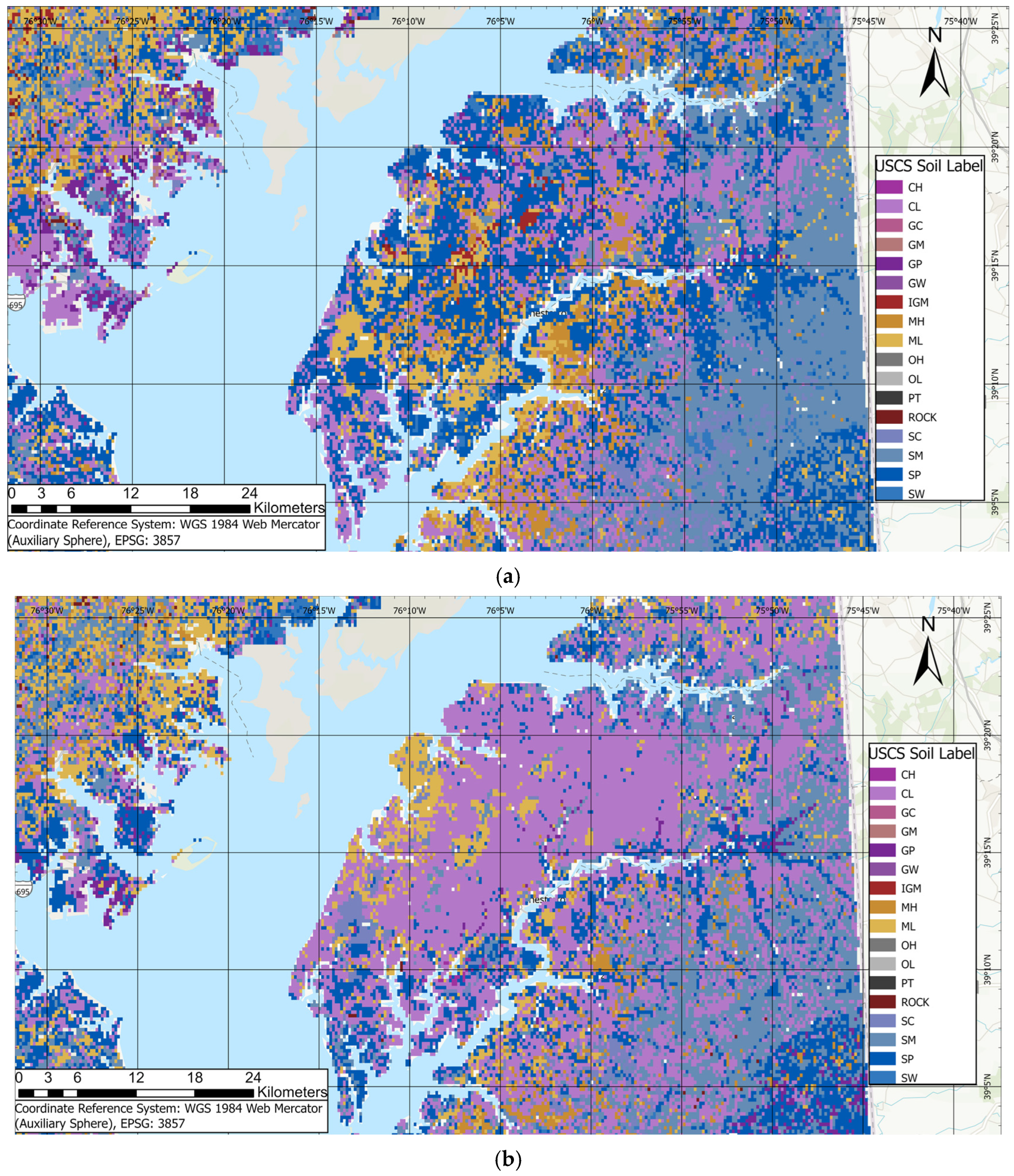 4.1. Soil Type Prediction in the Eastern Shore Area