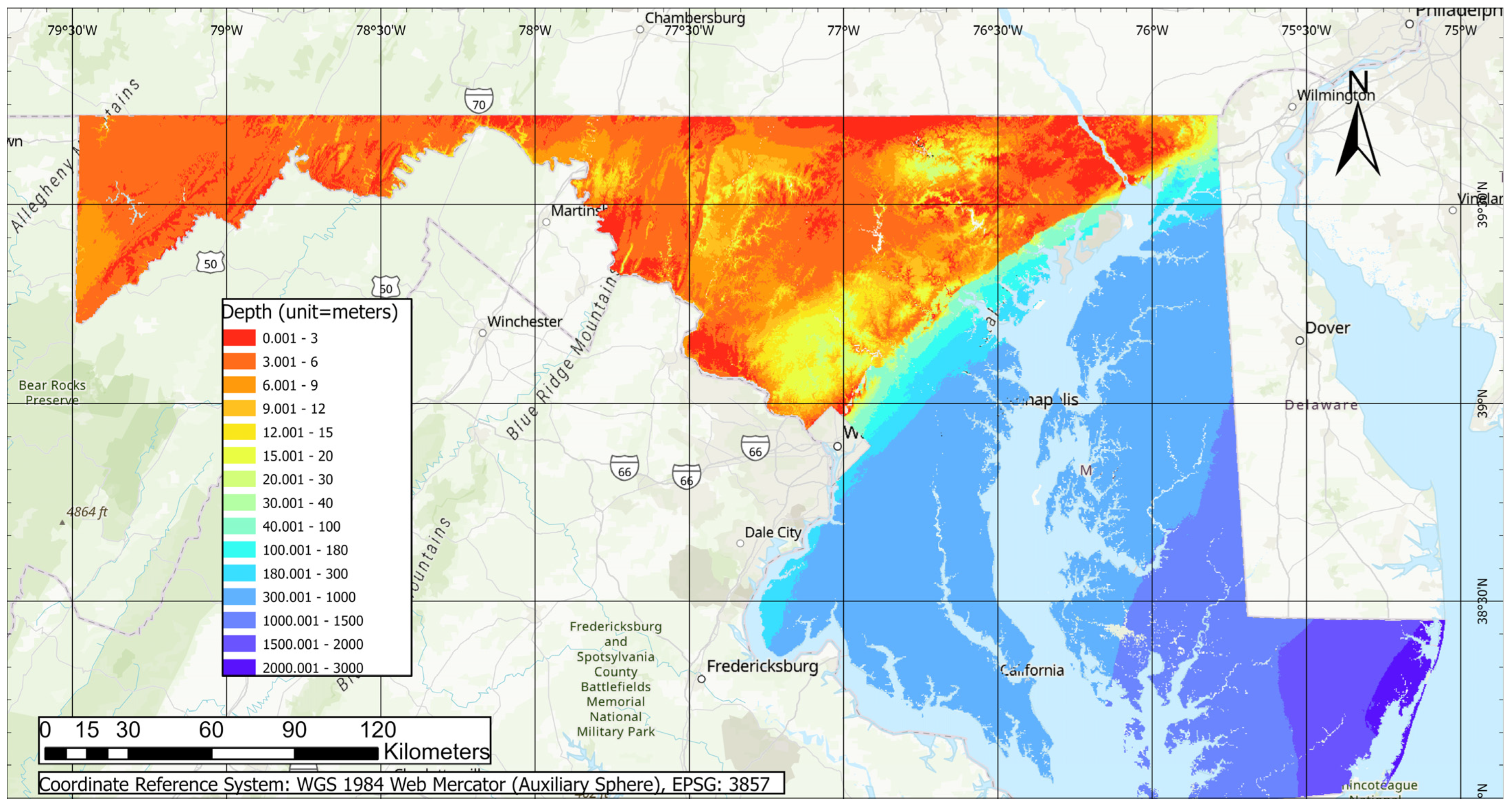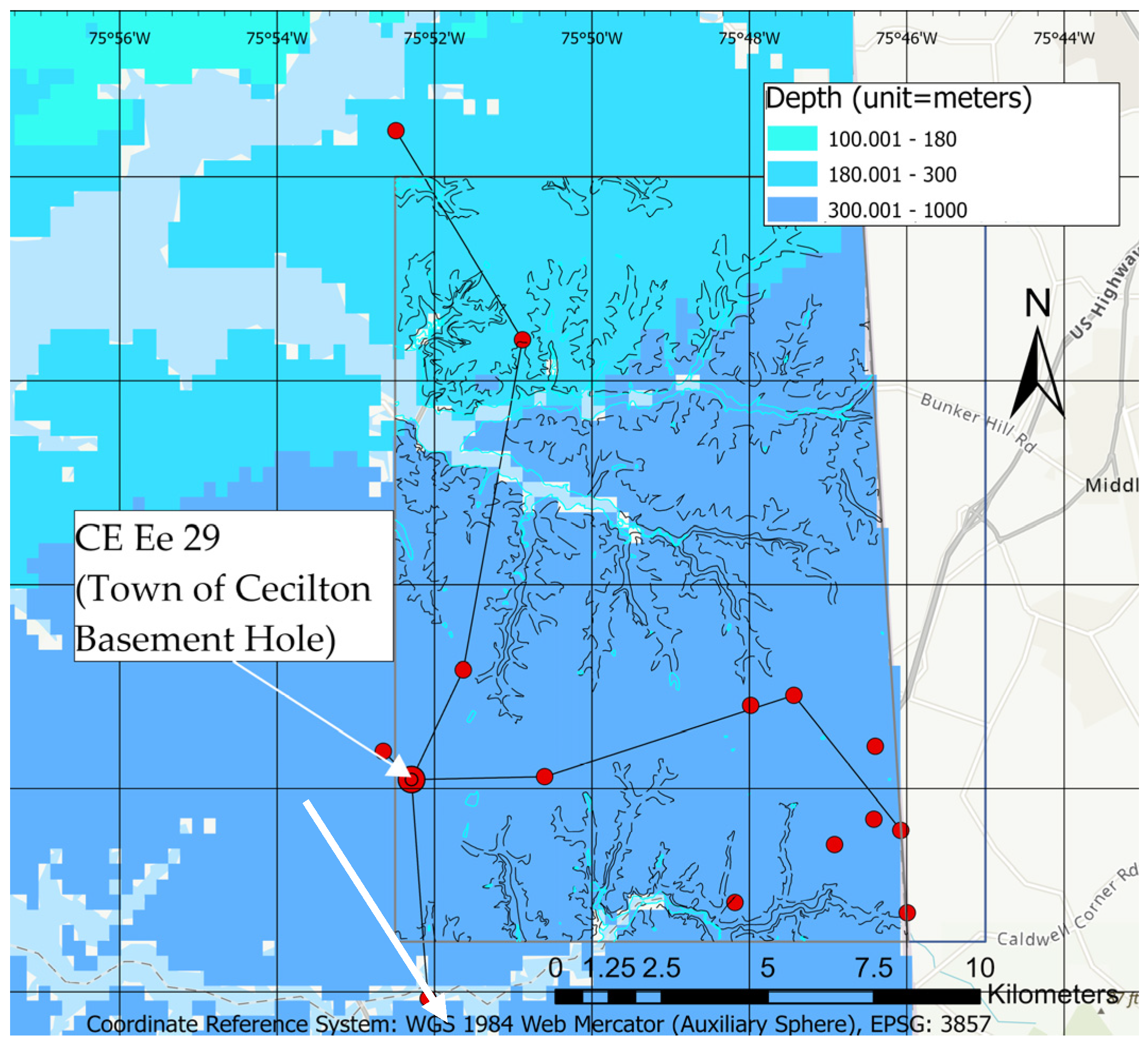 - Hansen, H.J.; Edwards, J., Jr. The Lithology and Distribution of Pre-Cretaceous Basement Rocks Beneath the Maryland Coastal Plain; Department of Natural Resources, Maryland Geological Survey: Baltimore, MD, USA, 1986.