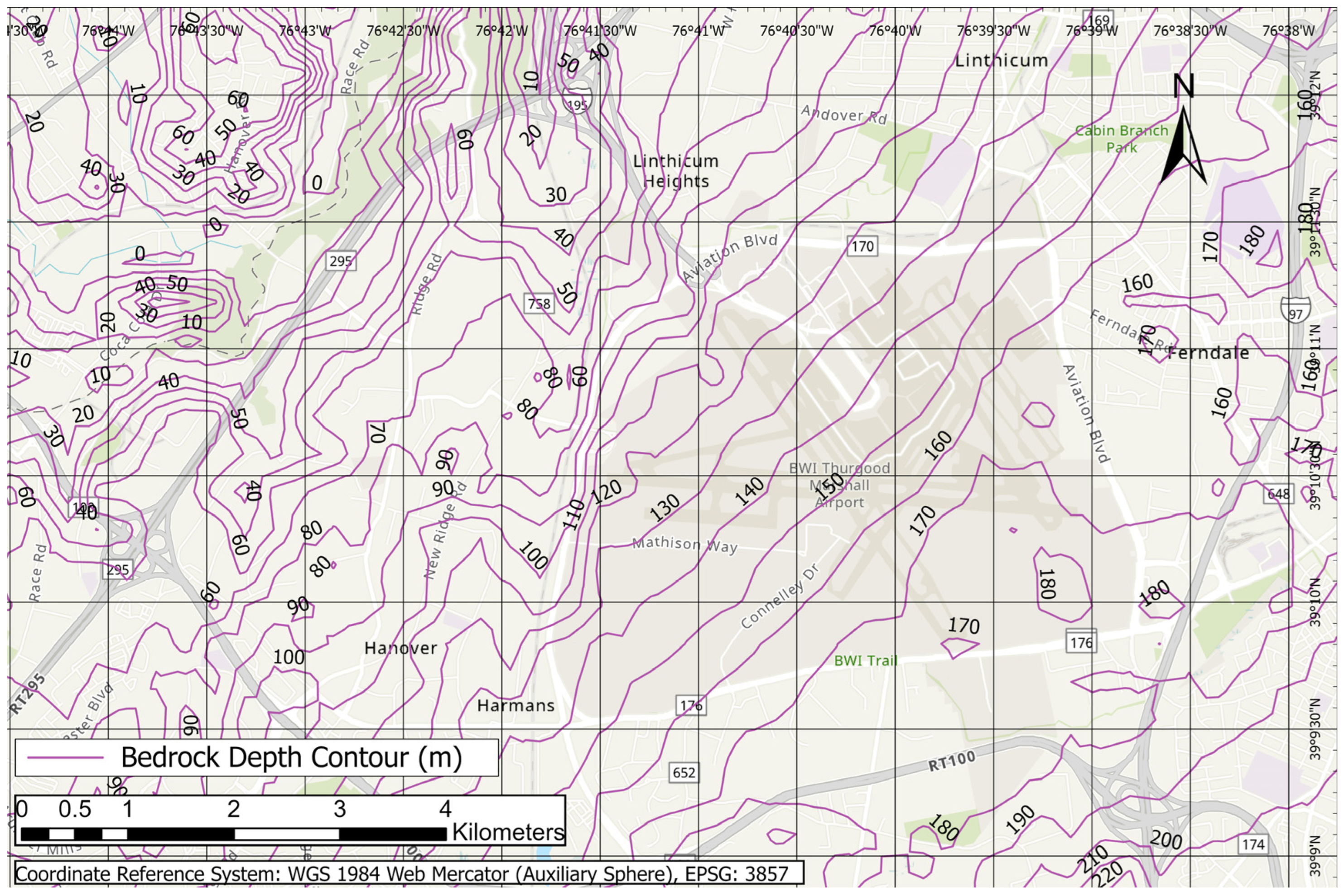 - Junkin, W.D. Geologic Map of the Relay Quadrangle, Anne Arundel, Baltimore, and Howard Counties and Baltimore City, Maryland; MD DNR Publication No: DNR12-032822-308; Department of Natural Resources, Maryland Geological Survey: Baltimore, MD, USA, 2021.