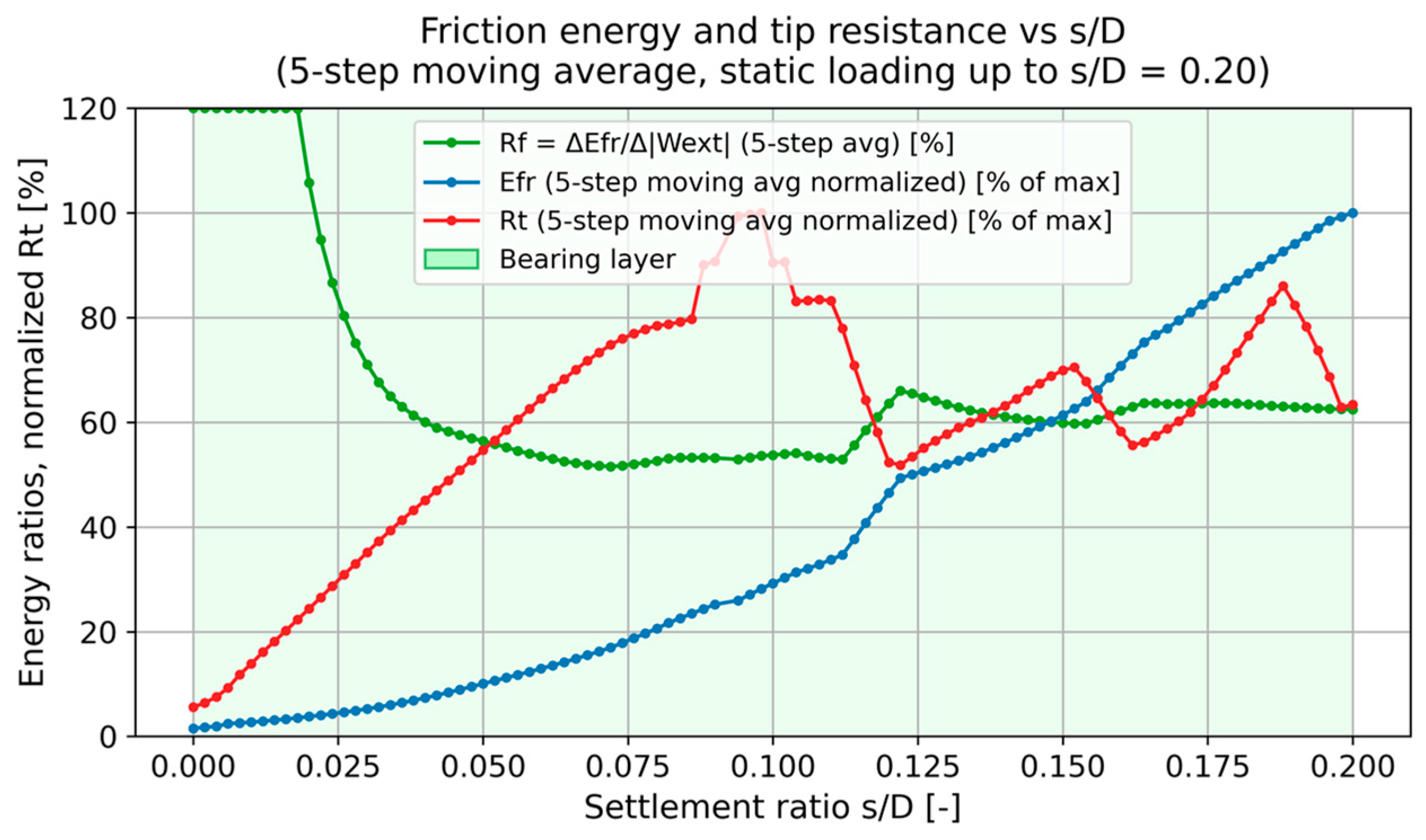 These criteria ensured stable quasi-static behavior during driving, rest, and static loading. Static evaluation was focused on s/D = 0.1, while loading to s/D = 0.2 was treated as a reference analysis for post-peak mechanisms.