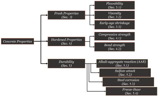 | Flowability | Viscosity | Early-Age Shrinkage | Compressive Strength | Bond | AAR | Sulfate Attack | Steel Corrosion | Freeze-Thaw | |