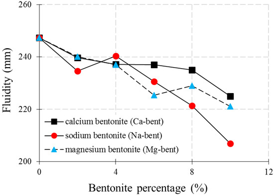 3.1. Effect of Clays on Fluidity of Concrete