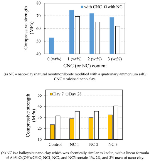 - Hamed, N.; El-Feky, M.; Kohail, M.; Nasr, E.-S.A. Effect of nano-clay de-agglomeration on mechanical properties of concrete. Constr. Build. Mater. 2019, 205, 245–256. [Google Scholar] [CrossRef]