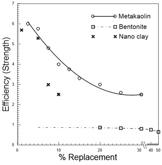- Mirza, J.; Riaz, M.; Naseer, A.; Rehman, F.; Khan, A.; Ali, Q. Pakistani bentonite in mortars and concrete as low cost construction material. Appl. Clay Sci. 2009, 45, 220–226. [Google Scholar] [CrossRef]
