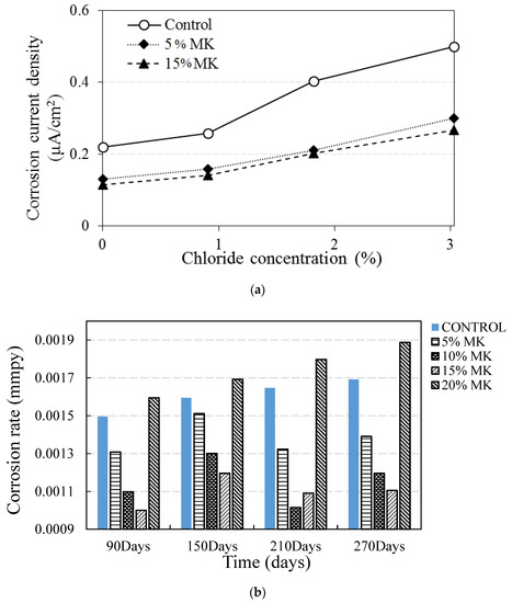 - Homayoonmehr, R.; Ramezanianpour, A.A.; Mirdarsoltany, M. Influence of metakaolin on fresh properties, mechanical prop-erties and corrosion resistance of concrete and its sustainability issues: A review. J. Build. Eng. 2021, 44, 103011. [Google Scholar] [CrossRef]