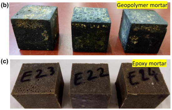 According to the US Army Corps of Engineers [11], alkali-activated cement should be a better performing binder than ordinary cement to repair army airbases. Moreover, many studies mentioned that epoxy modified cement mortar or epoxy sand mortar exhibits excellent resistance to aggressive environments [7,12]. Therefore, this study examined the resistance of geopolymer and epoxy mortar to a reproduced airfield operating condition.