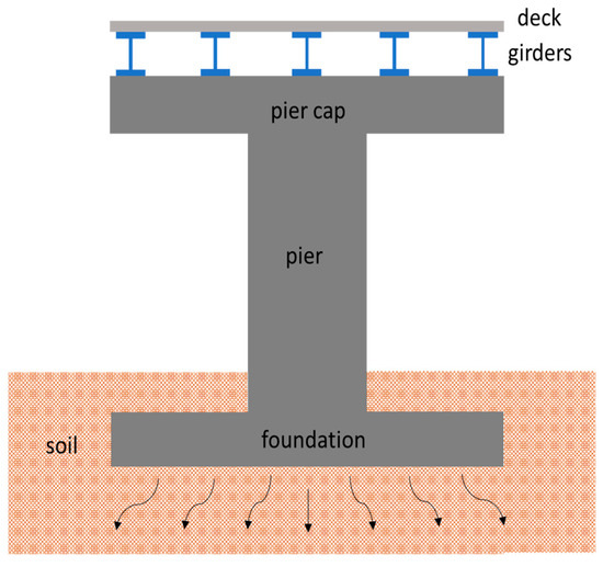 Typical cross-section at notional bridge piers, showing different components of a structure-foundation soil system.