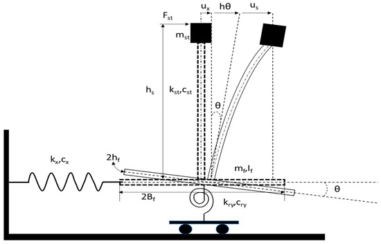 The above factors are discussed presuming the foundation lies on a homogeneous half-space, which can vary by site. Some sites may have layered stratum over half-space or bedrock. In this case, the extent to which the dynamic properties would be altered depends on the thickness of the layers and the distance to the bedrock/half-space [4,25]. Furthermore, factors affecting the soil rigidity can affect the response amplitudes, due to an altering of the static stiffness. These include the angle of internal friction, Poisson’s ratio, void ratio, degree of saturation, confining pressure, and grain characteristics [26,27]. The extent to which these factors influence the response depends on the strain level the soil is undergoing under a given load scenario. In addition, the implicit inclusion of DSSI effects and derivation of closed-form solutions for rocking and sliding foundations were studied in the literature [1,28,29,30,31,32,33].