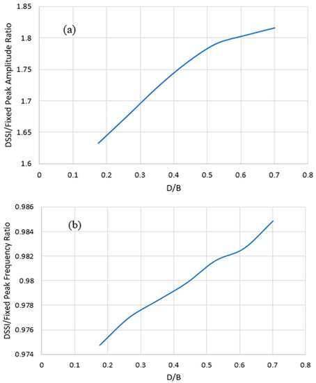 The effect of the D/B ratio on altering the DSSI based on (a) peak amplitude and (b) peak frequency, with other parameters held constant.
