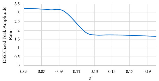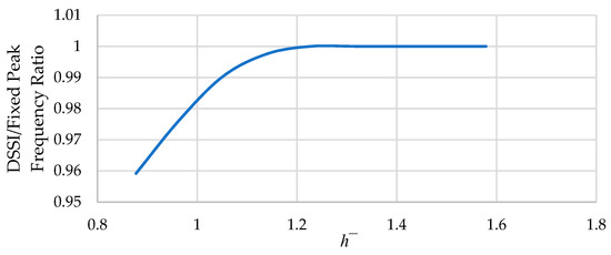 The effect of increasing on the maximum structural response (displacement or forces) can either increase or decrease as a function of when compared to a fixed base. Overall, increasing leads to increasing DSSI effects to varying extents depending on whether vertical, rocking, or swaying motions are the predominant mode of vibration [14,15,16]. This parameter is the most influential in controlling the extent of DSSI effects. In general, a foundation can be considered rigid if is > 10 [17].