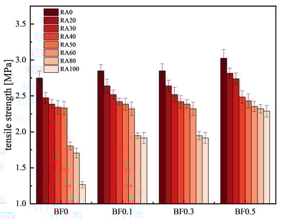 The splitting tensile strength of basalt fiber-reinforced recycled aggregates.