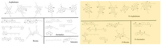 - Li, D.D.; Greenfield, M.L. Chemical compositions of improved model asphalt systems for molecular simulations. Fuel 2014, 115, 347–356. [Google Scholar] [CrossRef]