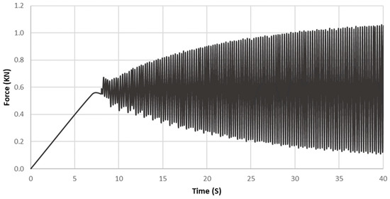 The MDCT specimens are tested under the sinusoidal loading of the servo-hydraulic testing machine between predefined lower and upper load levels. A force-controlled loading is employed for all the specimens in the fatigue test. At the commencement of the test, the axial force is increased monotonically up to the mean load level and subsequently switched to a sinusoidal fatigue loading as shown in Figure 7, achieving the final load amplitude after 80 s and 320 load cycles. In the fatigue tests, no less than six specimens with different material compositions such as HPC-B, HPC-G, and CM are investigated. The static tensile strength of the MDCT specimens is determined prior to the execution of the fatigue tests, wherein five specimens from each batch with the same dimensions and material properties as in the fatigue tests are considered. The static tests are carried out under displacement control of the electro-mechanical testing machine at a rate of 0.001 mm/min. The average value of the ultimate static tensile load is utilised to determine the load level for each composition during the fatigue tests.