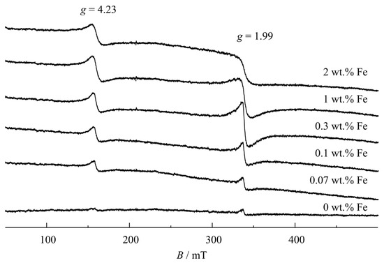 - Horn, M.; Schwerdtfeger, C.F. EPR of Substitutional and Charge Compensated Fe3+ in Anatase (TiO2). J. Phys. Chem. Solids 1971, 32, 2529–2538. [Google Scholar] [CrossRef]