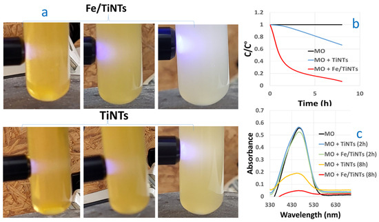 - Deng, L.; Wang, S.; Liu, D.; Zhu, B.; Huang, W.; Wu, S.; Zhang, S. Synthesis, Characterization of Fe-Doped TiO2 Nanotubes with High Photocatalytic Activity. Catal. Lett. 2009, 129, 513–518. [Google Scholar] [CrossRef]