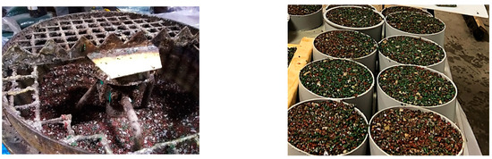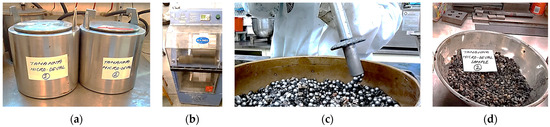 Micro-Deval abrasion loss test at the lab. (a) Aggregate sample in Micro-Deval container (b) Containers in Micro-Deval apparatus (c) Separating aggregates from steel balls (d) Cleaned aggregates.