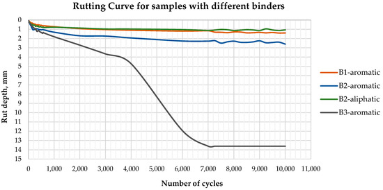 Hamburg Wheel Tracking Test Rutting curve for samples with different binders.