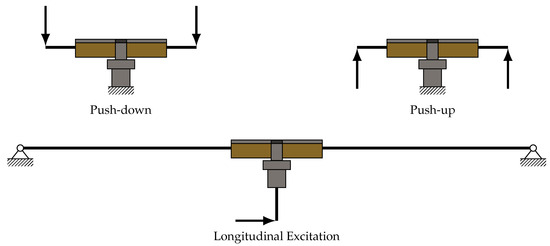 Considering that the bridge will undergo earthquake excitations other than the gravity-type loadings, three loading cases were considered to cover the various conditions the bridge might experience. The effect of gravity-type loadings resulting from live loads was considered using a push-down loading case where the connection undergoes negative moments. The effect of earthquake excitation was considered in two different loading cases: the push-up loading to simulate the vertical excitation and moment reversal loading, which simulates the horizontal component of the excitation along the bridge length.