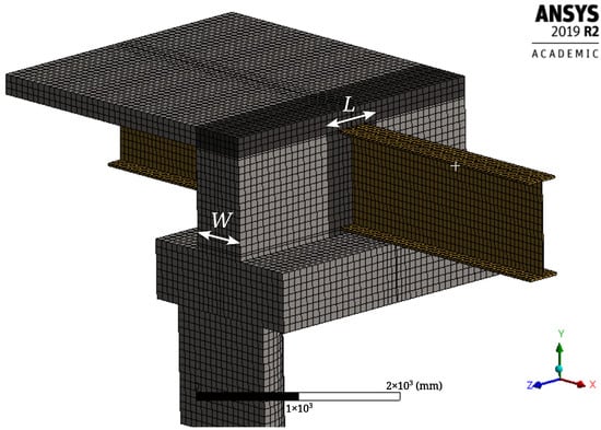 Table 1. Elements with 3D geometry and shell formulation (SLOSH190) were used to model the webs and flanges of the steel girders. The use of solid-shell elements provides the opportunity to define different contact types between concrete and steel, especially in the case of the SDCL steel bridge system, where the steel girders are embedded inside the concrete.