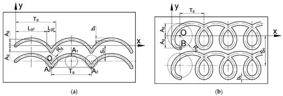 Microrelief profile with identical geometric parameters, according to Table 1: (a) sinusoidal profile; (b) rotary profile.