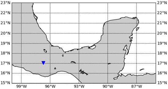 Geographical coordinates (blue triangle) for San Agustín Yatareni, Oaxaca, México.