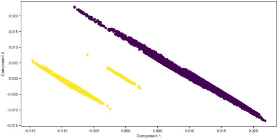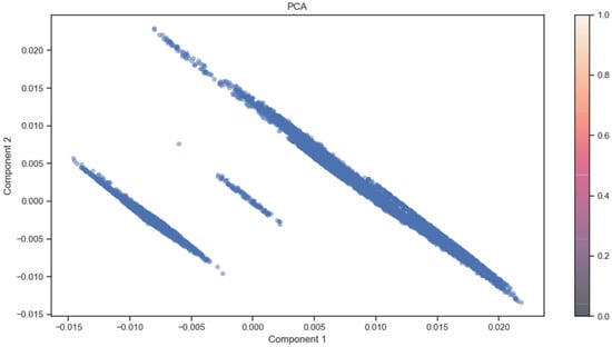 In contrast, the K-means algorithm clusters data based on similarities, facilitating the identification of natural groupings within the data. By combining PCA and K-means methods, it is possible to detect complex patterns that might not be immediately apparent, aiding in informed decision-making and the extraction of valuable insights from complex datasets. Figure 14 shows the result of applying PCA to the data presented in Figure 13.