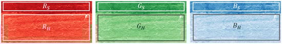 Rooted in color theory and optics, the RGB (red, green, and blue) model is based on additive color synthesis, where different intensities of red, green, and blue light are combined to generate millions of colors []. In the RGB model, each color component is represented by a light intensity ranging from 0 to 255. By varying these intensities, colors can be mixed to produce everything from pure red to full-spectrum white light [].