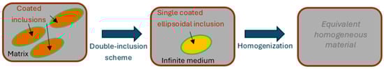 Hori and Nemat-Nasser [] generalized Eshelby’s formula and Mori–Tanaka’s average theory to propose a double-inclusion model. In this model, inclusions are embedded in a fictitious reference matrix and coated with another material matrix to predict the effective properties of composites considering interphase effects (Figure 2).