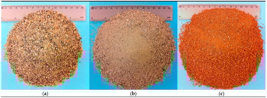 Fine aggregates used for the study: (a) natural sand, NS (b) recycled-concrete sand, RCS and (c) recycled-burnt-brick sand, RBS.