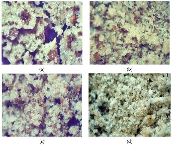 Subsequently, the wastes were physically characterized by laser granulometry using a Bettersize 2000 (Dandong Bettersize Instruments Ltd., Dandong, China) device, using alcohol isopropyl as the vehicle, and the bulk specific gravity was determined based on ASTM C127-24 [24]. The chemical characteristics were determined through X-ray fluorescence spectroscopy (XRF) in a Panalytical Epsilon 3x spectrometer (Malvern Panalytical, Almelo, The Netherlands), while the morphology was observed through optical microscopy, using a Coleman e Kontrol 26600 stereoscope (Coleman Equipamentos para Laboratório, Santo André, Brazil) with a magnification of up to 45 times.
