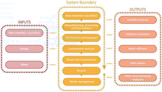 As previously mentioned, LCA is a widely recognized method to evaluate the environmental burdens associated with a product, service, or process throughout its life cycle, from raw material extraction to final disposal, from cradle to grave, in order to help consumers make environmentally beneficial decisions. The primary objectives of LCA are to quantify or characterize all inputs and outputs throughout the product’s life cycle, specify the potential environmental impacts, and explore alternative strategies to minimize these impacts [30].