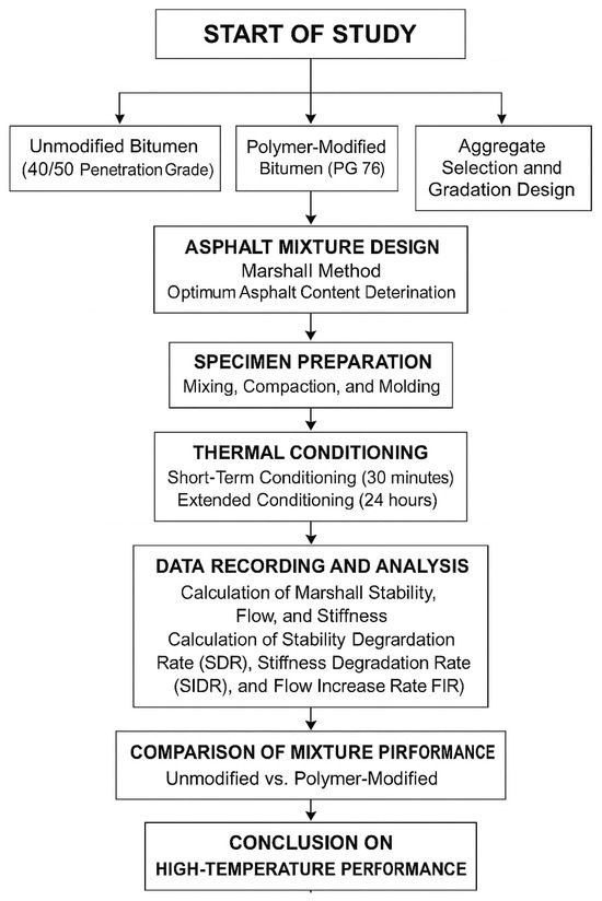 - Evaluate the effects of elevated temperatures (60 °C, 65 °C, 70 °C, and 75 °C) on the Marshall stability, flow, and stiffness of both mixture types.