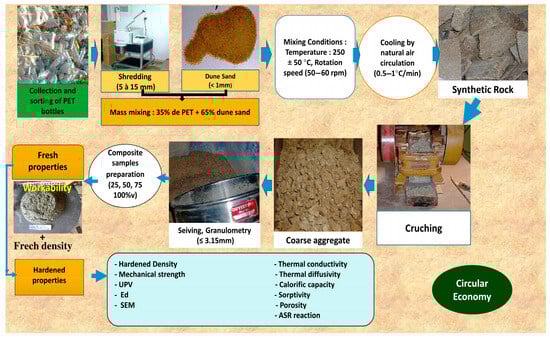 Lightweight aggregates from plastic waste (WPLAs) have also been produced from PET using granulated blast furnace slag [33] or from PET mixed with river sand [34,35,36].