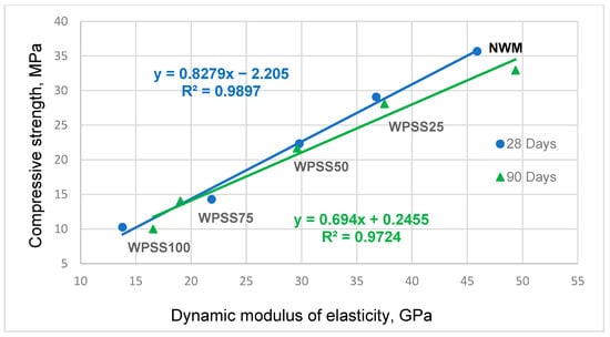 The dynamic elastic modulus is calculated by analyzing the velocity of ultrasonic wave propagation through composite materials. It can be determined using the following expression, as reported in previous studies [14,51]:
