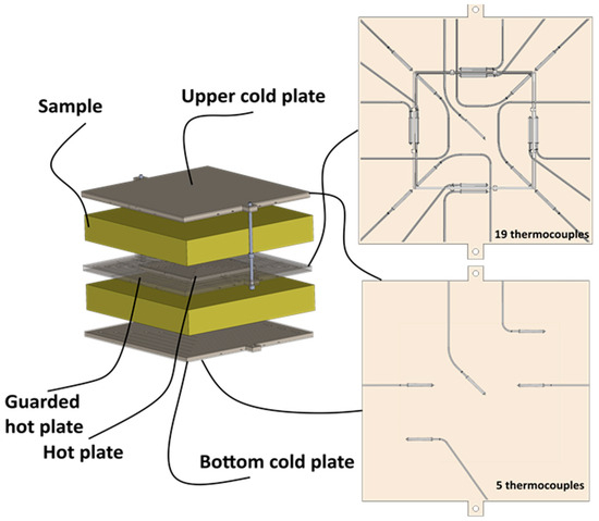 - Hemminger, W.; Jugel, R. A Guarded Hot-Plate Apparatus for Thermal Conductivity Measurements over the Temperature Range 75 to 200 C. Int. J. Thermophys. 1985, 6, 483–498. [Google Scholar] [CrossRef]