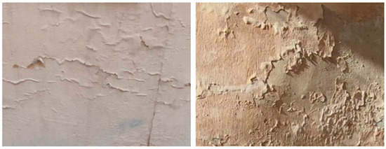 The deterioration of heritage buildings due to environmental and material-related factors is a pressing concern worldwide. Across many countries, historic structures face significant risks from high humidity, climate fluctuations, pollution, and the use of incompatible restoration materials, all of which contribute to the loss of architectural integrity and cultural identity [1]. Problems such as peeling paint, plaster failure, and surface erosion are not unique to any single region, but rather represent a global challenge in the field of heritage conservation. Addressing these widespread issues requires the development of sustainable, durable, and historically compatible materials that can preserve both the function and appearance of these important structures for future generations [2]. The city of Mosul has always been known for its rich architectural heritage, but today faces an additional problem in attempting to prevent decay: the immense humidity and other environmental factors have caused painted surfaces to weather more quickly than normal [3,4]. Common restoration practices that utilize traditional white paints often lead to moisture intrusion which leads to peeling, detachment, and esthetic deterioration resulting from incompatibility with lower layers [3]. Figure 1 illustrates the damage that occurs as a consequence of utilizing conventional paint to restore heritage buildings in regions with high humidity levels.