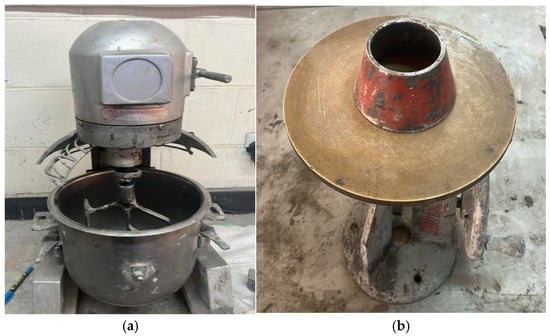 (a) The mortar mixer, (b) apparatus for the flow table test according to ASTM C1437.