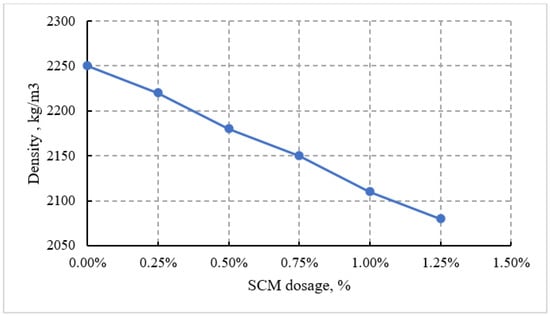 - The present findings are specific to the cement type, curing regime, and testing program employed. Future research should aim to (i) link SCM’s chemical composition more directly to performance, (ii) evaluate long-term durability under field exposure, and (iii) extend investigations to other binders and concrete systems. Such work will clarify SCM’s broader role in sustainable construction and its potential to complement or partially substitute conventional admixtures.