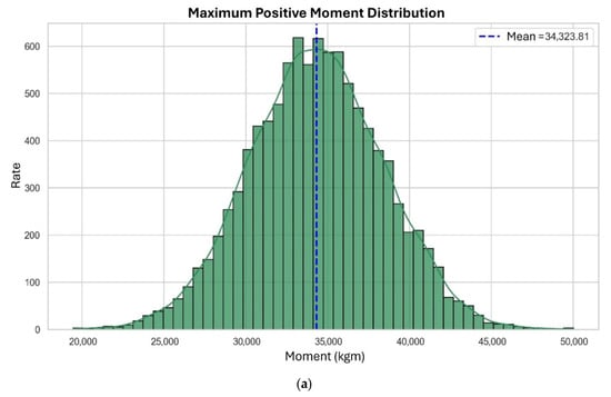 It is important to note that the concrete compressive strength () and reinforcement yield strength () were not modeled as random variables in this stage of the study. Since the analysis focuses on the probabilistic evaluation of flexural demand (internal forces) under gravity loads, the inclusion of these material strengths does not influence the distribution of moments obtained through elastic analysis in OpenSeesPy. Their role is instead fundamental in capacity assessment, which lies outside the scope of the present demand-oriented study.