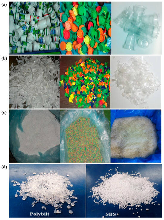 - Panda, M.; Mazumdar, M. Utilization of reclaimed polyethylene in bituminous paving mixes. J. Mater. Civ. Eng. 2002, 14, 527–530. [Google Scholar] [CrossRef]
