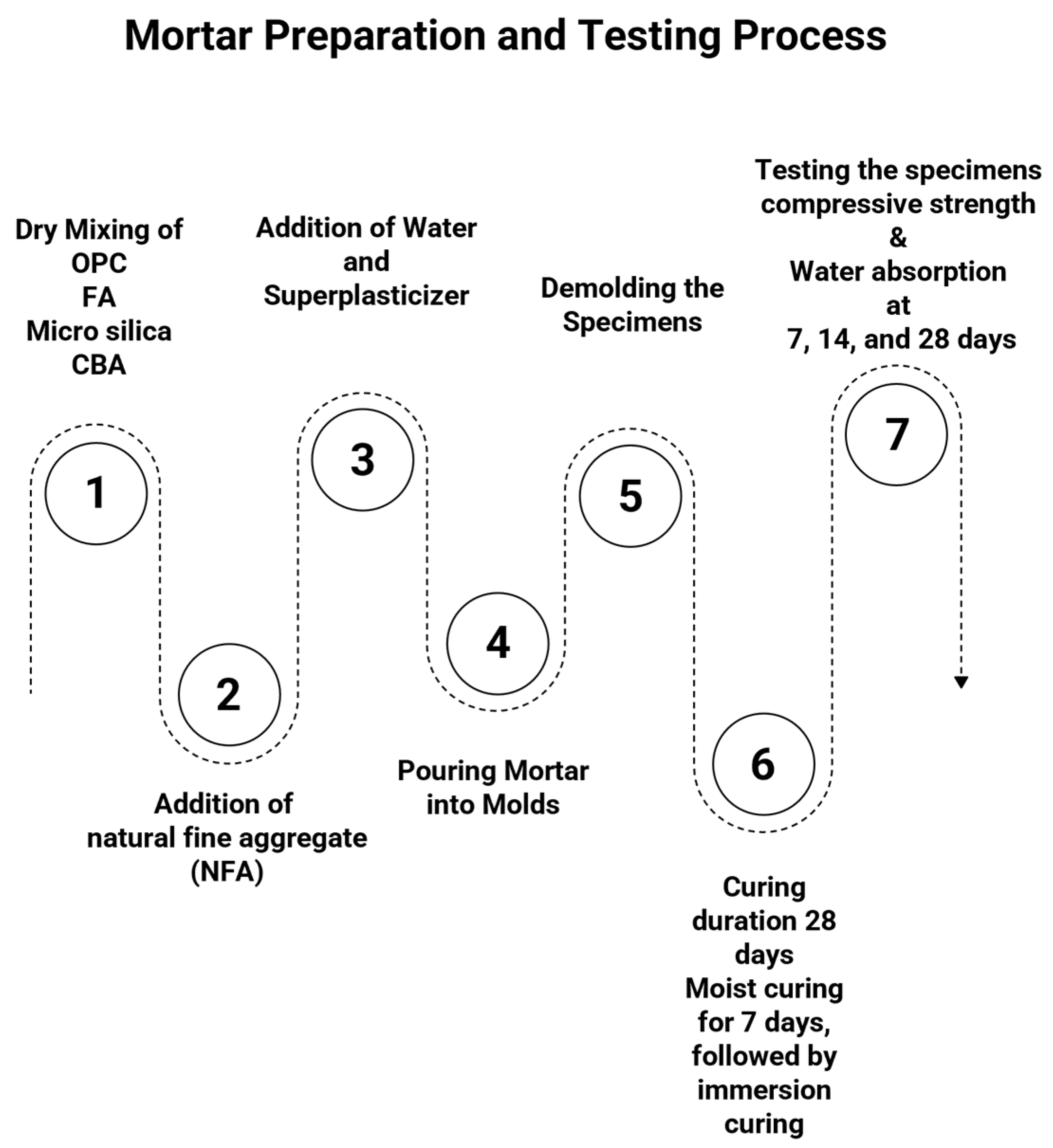 2.3. Mortar Mixing, Casting, and Curing of Samples