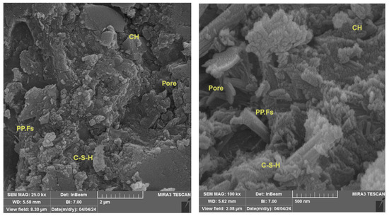 SEM micrographs of brick waste powder (PWP).