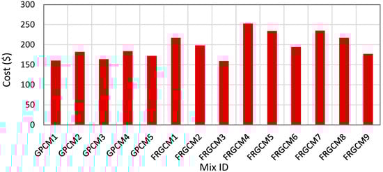 Total materials cost of applied GPCMs.